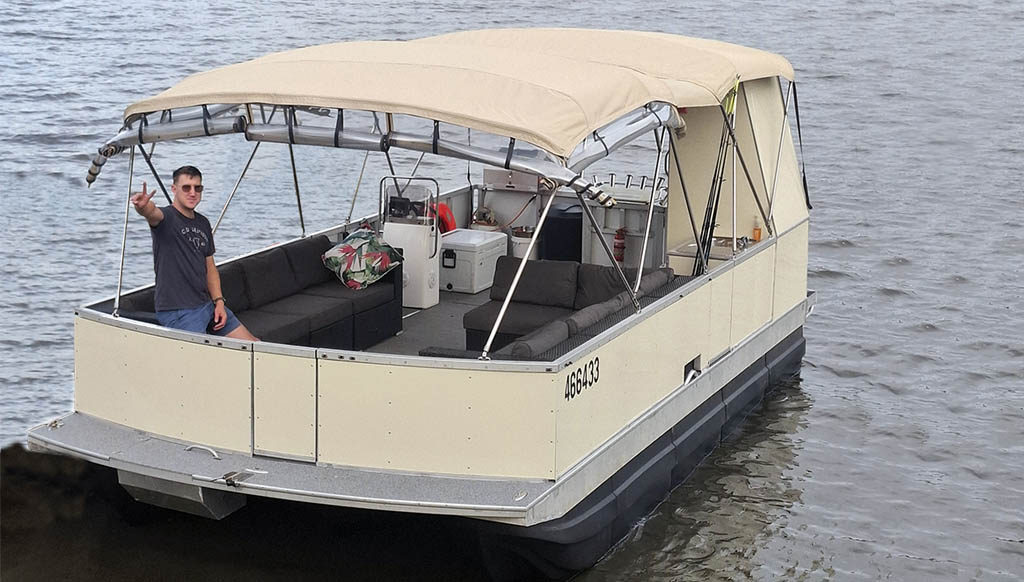 Johno is a modern luxury pontoon for up to 12 people. This 28m² carpeted boat features a modern lounge, full-size toilet, gas BBQ with utensils, icebox/eski, stereo/Bluetooth, sun lounge, fishing rods & equipment (on request), wheelchair access, drink holders, fishing maps, and a boat anchor and storm covers. Perfect for a premium day on the water.